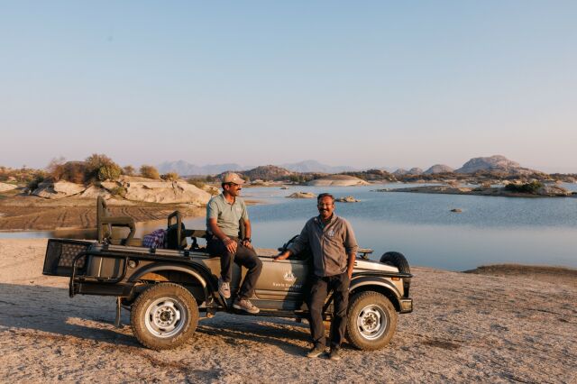 Rawla Bisalpur, nestled in the charming village of Jawai – Bisalpur, is a small historic palace with four exquisite rooms. These hotel rooms are converted from the royal family’s 1930s Indo-European villa guest house, adjacent to their main 18th-century ancestral palace, now an atmospheric relic. Re-furbished by the family in 2019, the hotel offers memorable experiences like an evening safari to spot leopards, farm picnics, bicycle tours and sundowners by the Jawai Lake. The landscape is striking, with smooth granite rocks, sculptural cacti and vibrant yellow wildflowers.